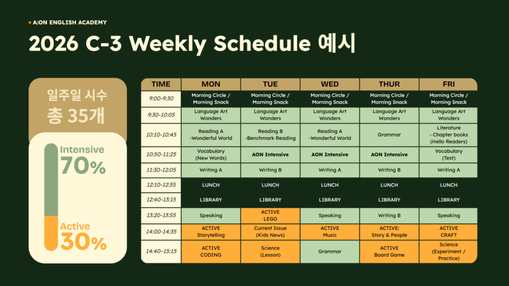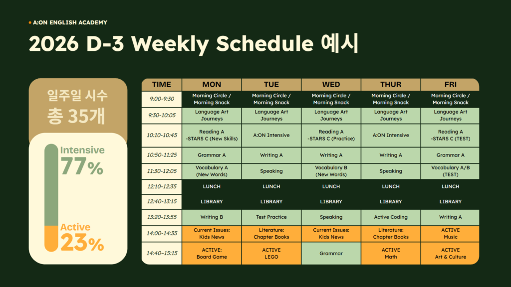 A:ON 오전반 스케줄 예시표 입니다.